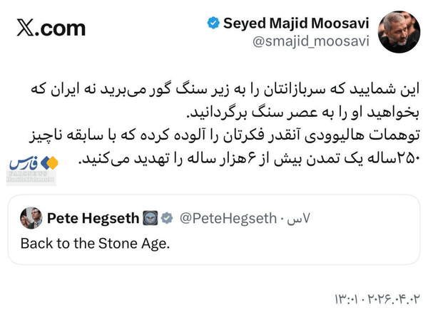 پاسخ سیدمجید موسوی به وزیر جنگ ترامپ: با سابقه ۲۵۰ساله یک تمدن ۶هزارساله را تهدید میکنید
