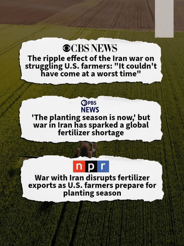 تاثیر مستقیم جنگ بر روی اقتصاد آمریکا و افزایش دیوانه وار قیمت بنزین بحث داغ این روز های نشریات آمریکایی و بین المللی است.🔺منابع آمریکایی: جنگ ترامپ با ایران نهتنها باعث افزایش قیمت بنزین و گازوئیل در آمریکا شده، بلکه درست در آستانهٔ فصل کشت، هزینهٔ کود شیمیایی را نیز برای کشاورزان بالا برده است