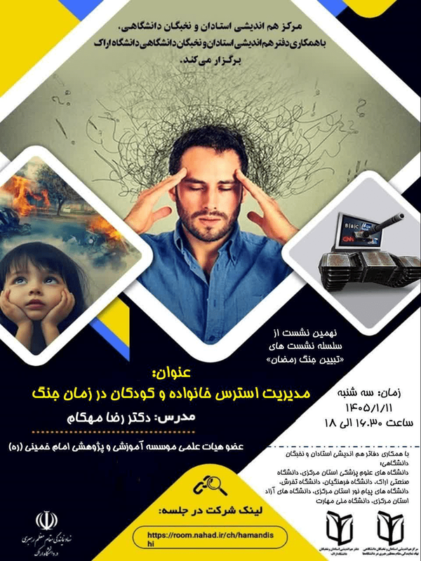 @hamandishi1 روز پیشوبینار تخصصی «مدیریت استرس خانواده و کودکان در زمان جنگ» برگزار میشود