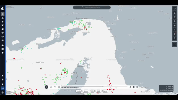 طبق دادههای ردیابی کشتیها در حال حاضر تعداد محدودی کشتی از تنگه هرمز عبور کردند.۳۵۹ KB
