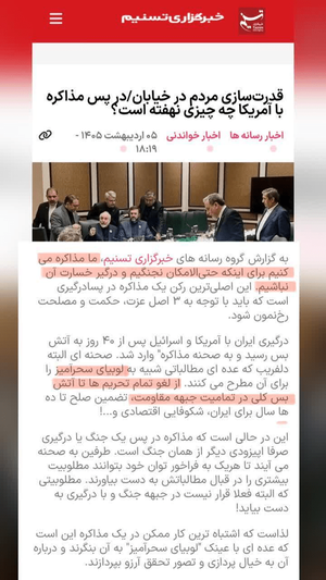 @user1775286560412 روز پیش🔴 روحانی: زنگ زدم به آقای عراقچی و گفتم این پیام را فوری منتقل کن به سفارت سوییس (واسطه ایران و امریکا در سال ۹۸)👈 عراقچی گفت: نباید با جایی هماهنگ کنم؟ گفتم با هیچ جا نمیخواهد هماهنگ کنی! فوری این پیام را منتقل کن!⁉️ همه چیز با رهبری هماهنگه !!!؟۶۲۶ KB